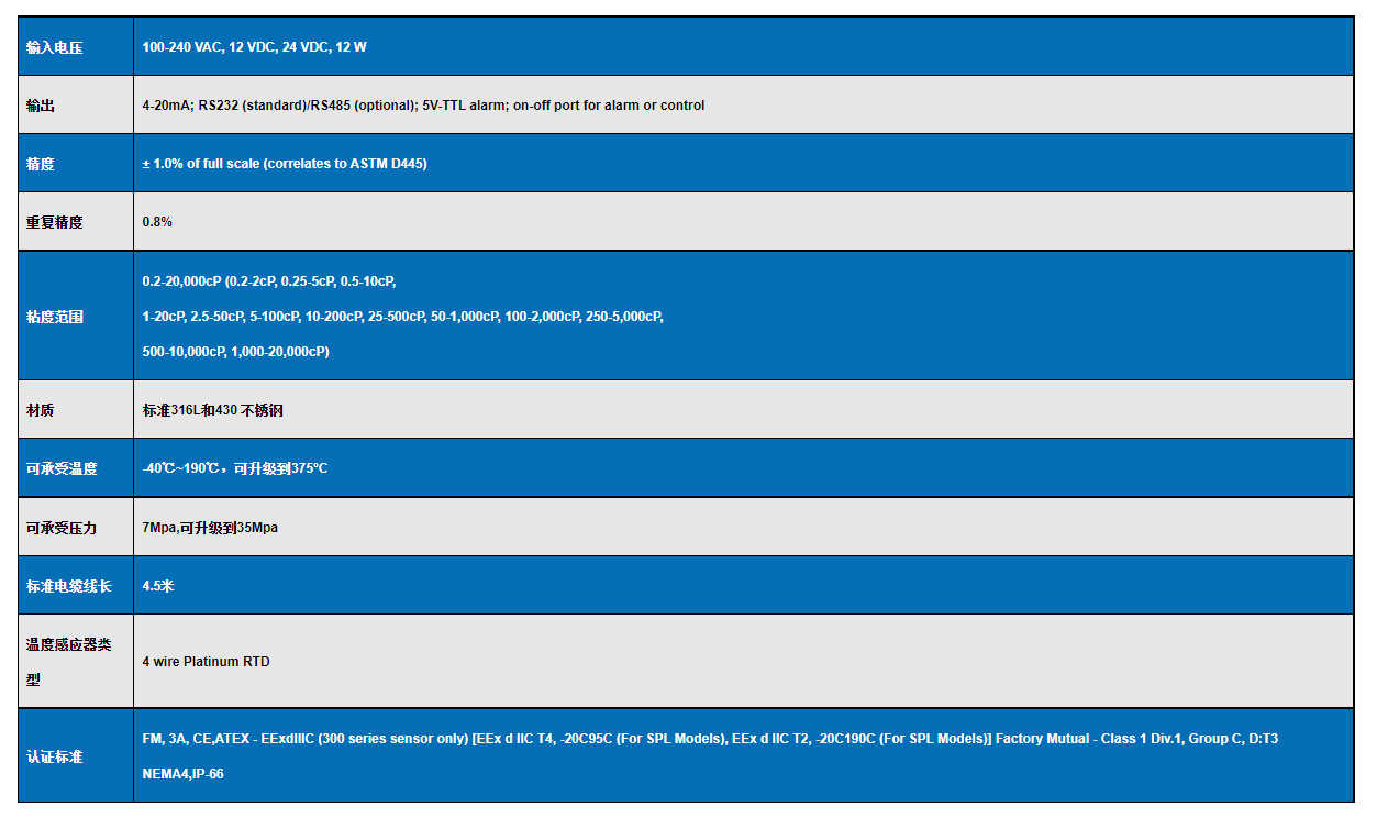 該粘度探頭檢測樣品量僅需1ml,重量約1kg,樣品可通過粘度探頭溫空套調(diào)節(jié),檢測時間十幾分鐘,這些都是防爆粘度計的典型特征,在實驗室,大學(xué)和研究所得到廣泛應(yīng)用,主要測定特定流體樣品的粘度參數(shù),比如潤滑油研究領(lǐng)域,為潤滑油的特性和質(zhì)量等標(biāo)準(zhǔn)提供了基本的信息,通過測定某一型號潤滑油或其混合物的粘度,可以為客戶或設(shè)計者提供所需的泵的設(shè)計容量提供依據(jù)。
